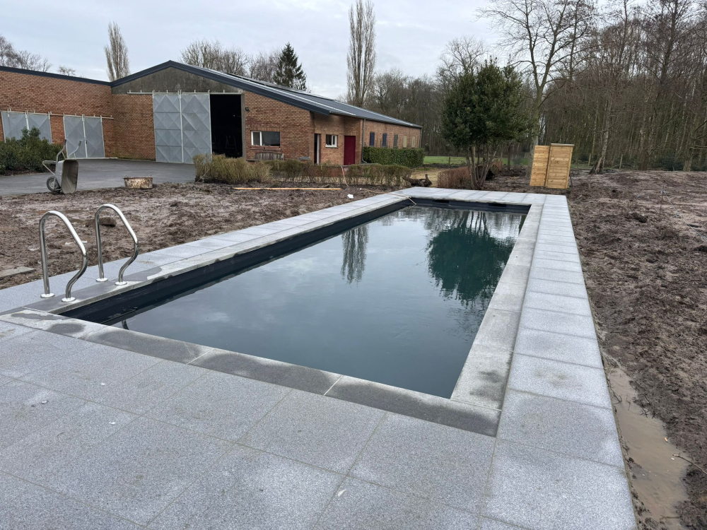 klant koos voor een graniet afwerking voor het zwembad en bijhorende terrastegel