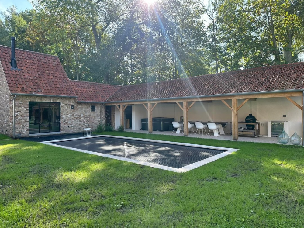 Plaatsen van antraciet HDPE-zwembad 8 x 3,50 x 1,50m te Stalhille