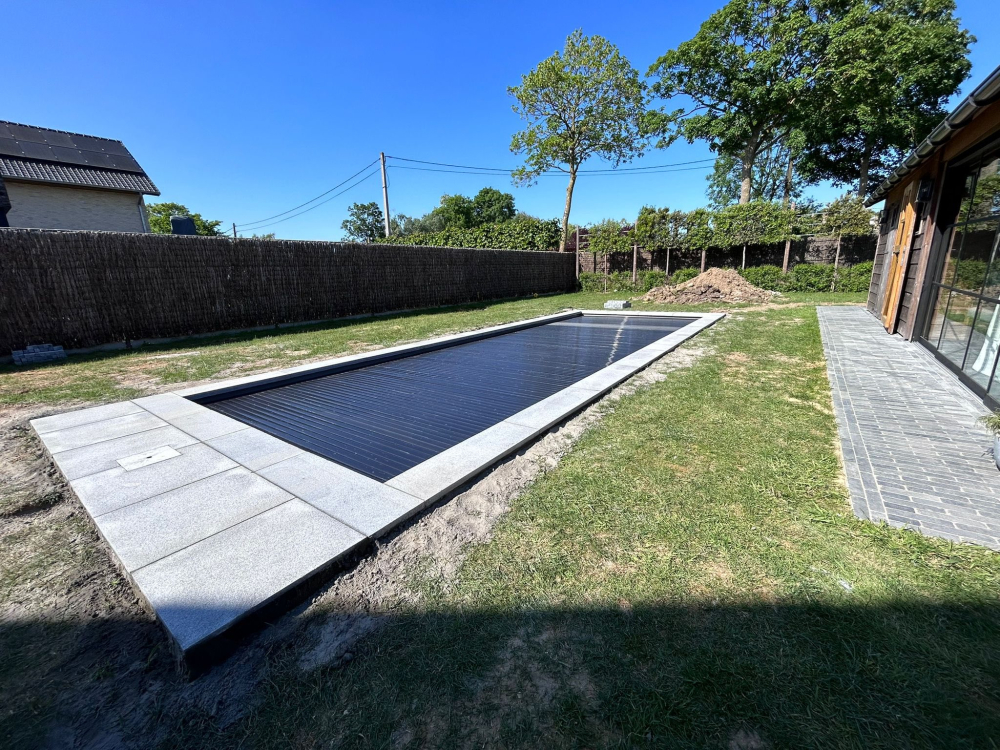 zwembad met graniet boordsteen en een extra tegel